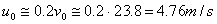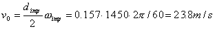 Tip velocity of the pump impeller: